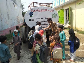 Daily around 15,000 liters of clean drinking water is trucked to areas where the drinking water sources got contaminated as result of Monsoon 2022 Floods.