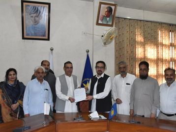 10th September 2024. A memorandum of understanding Signed between FRD and University of Agriculture Peshawar on Supporting each other in research relevant to enchaining agricultural productivity, climate smart agriculture and linking the academia and practitioners here in the Vice Chancellor Office. The MoU was signed by Vice Chancellor Dr. Professor Jehan Bakht and CEO Mr. Azmat Khan. Under the MoU FRD in its resource efficient Project supported by BMZ and Helvetas Germany has installed a rese